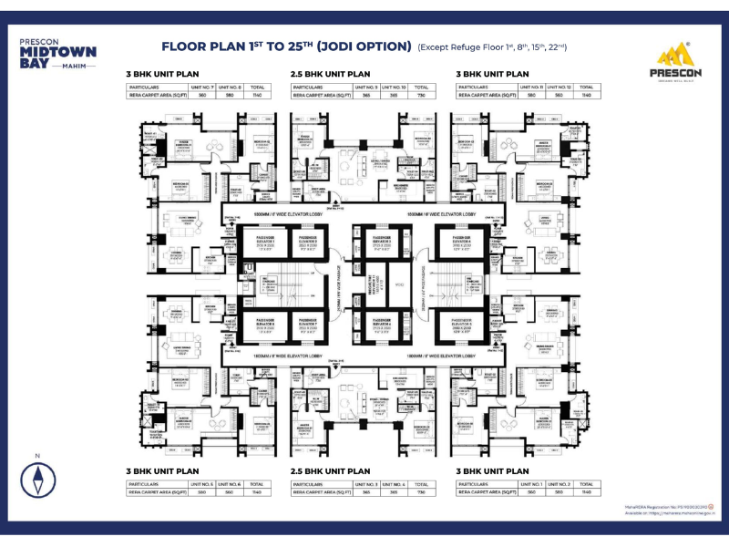 PRESCON MIDTOWN BAY, a luxurious residential project by PRESCOTT GROUP in Mahim (W), offers magnificent 3 BHK residences that embody an unmatched international lifestyle. Spanning approximately 0.75 acres in a premium location with excellent connectivity, this development promises great ROI and an aspirational quality of life. The project boasts a sublime location with breathtaking city skyline views and panoramic visual appeal. Enriching internal and external amenities makes it an investor’s delight and an end user’s dream. The layout includes a 2-level basement, ground level, 10-level podium, and 35 habitable floors, served by 8 exclusive passenger lifts, ensuring convenience and exclusivity for its residents.